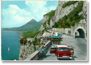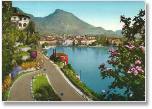 Bijgesloten nog een leuk oud plaatje zoals ik me het Gardameer en de weg rond het meer, kan herinneren. De foto is van een kaart en geeft aan dat het vlak bij Riva is.